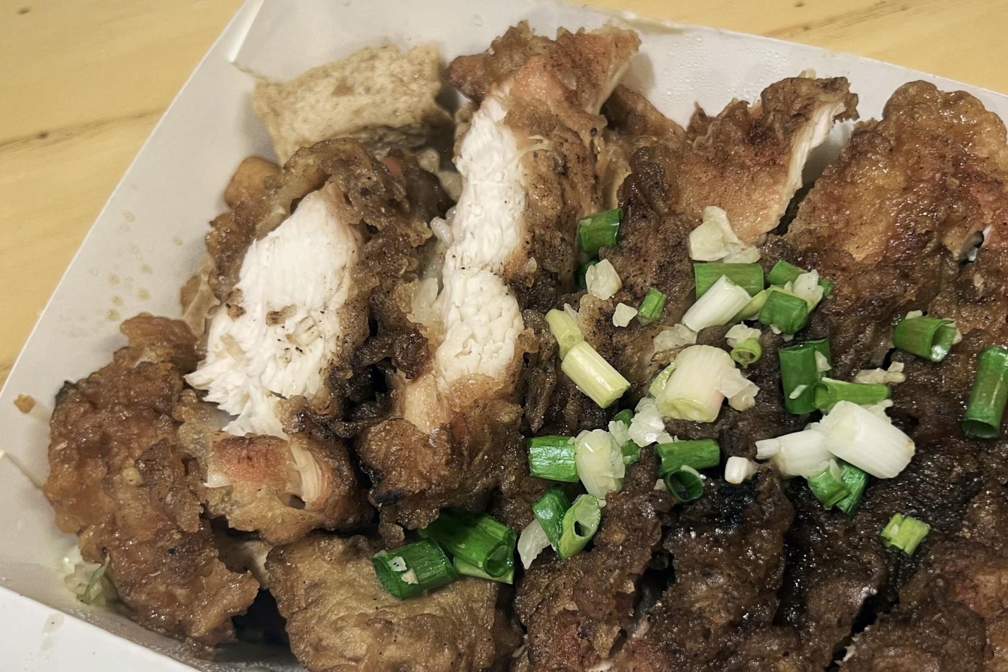 回程路上買了有名的碳烤雞排回去,正如姊所說非常好吃又大份,吃完我們便匆匆洗了澡,結束這淡淡幸福的一天。