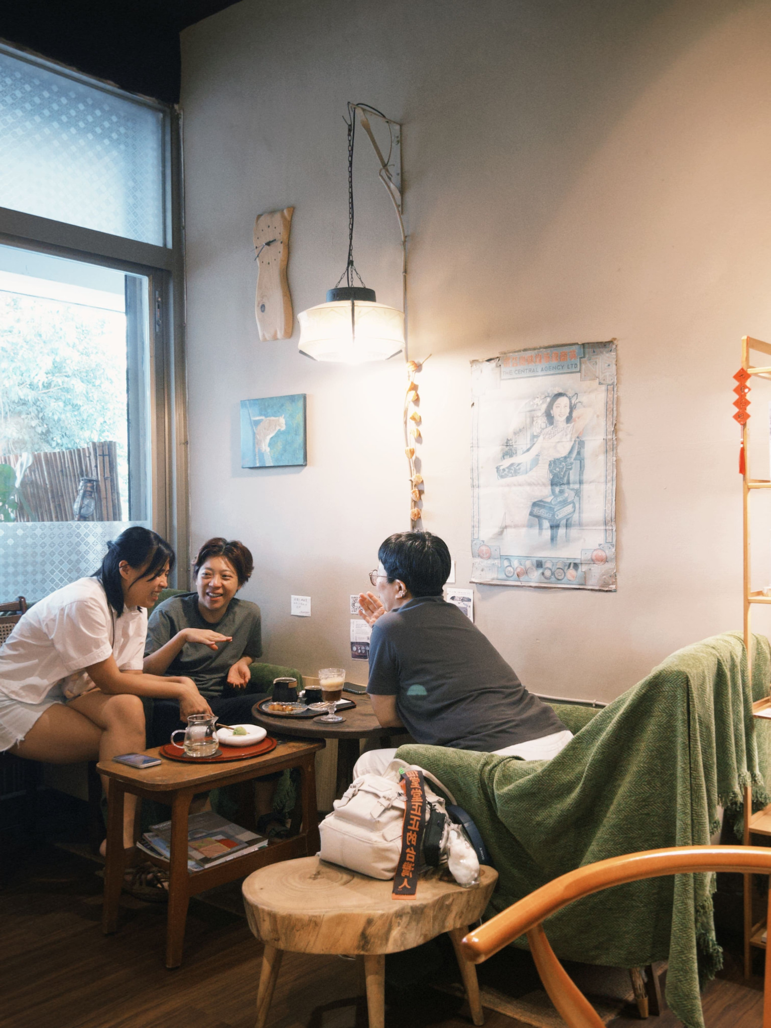 品嚐完精緻的糕點,我們閒逛起店內的擺飾,在角落的櫃子上發現一本留言本,我們馬上興致勃勃的想看來到這裡的大家都寫了些什麼。一番瀏覽後,我發現本子里的大家很多都是來花蓮旅遊,藉此重新感受土地、人、自己的溫度與重量。有人說自己是離開西部生活來花蓮學呼吸,也有人覺得花蓮的土很黏,來過就會想留下來定居了⋯⋯全部的全部都讓我感到震懾,因為待在花蓮短短6天,我卻神奇地跟他們有一樣的感受。