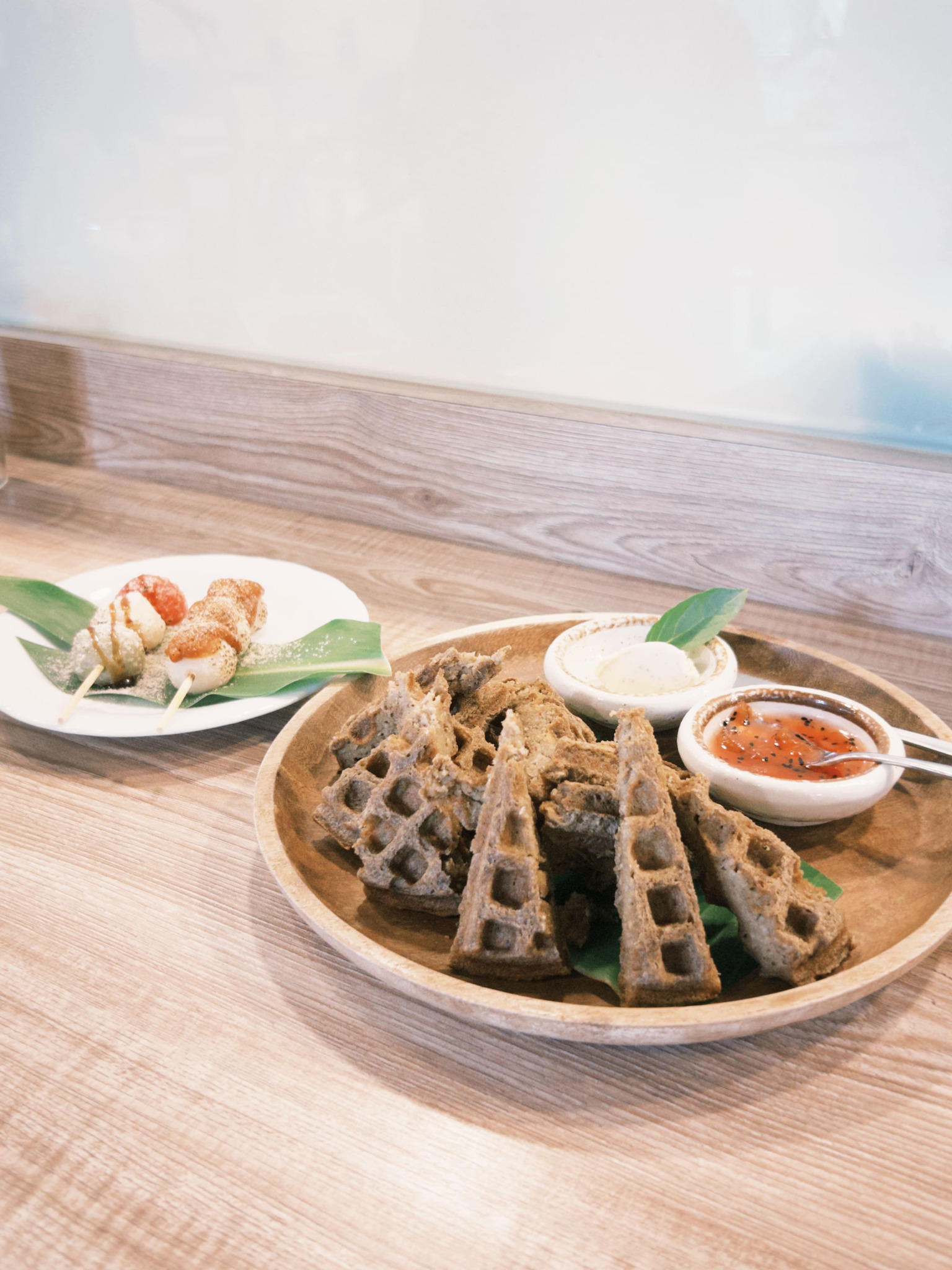 柚香豆漿和野草沙士也都很厲害,覺得最強的是,鬆餅是無麩質的,連配在旁邊的起司也是用豆子製作的,糰子是泥火山豆腐與米結合的,所有餐點都和羅山息息相關。