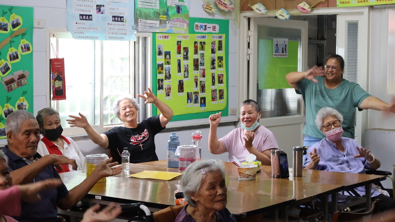 可這對應變能力100分的領跳來說根本不成問題,況且文健站的長輩們簡直是捧場冠軍,氣氛這塊完全不用擔心。領導有方的紅豆、琅琅上口的音樂,再加上一呼百應的阿公阿嬤們,眾人就這麼一路歡樂到用餐的前一刻,為今日的課程劃下一個完美的句點。