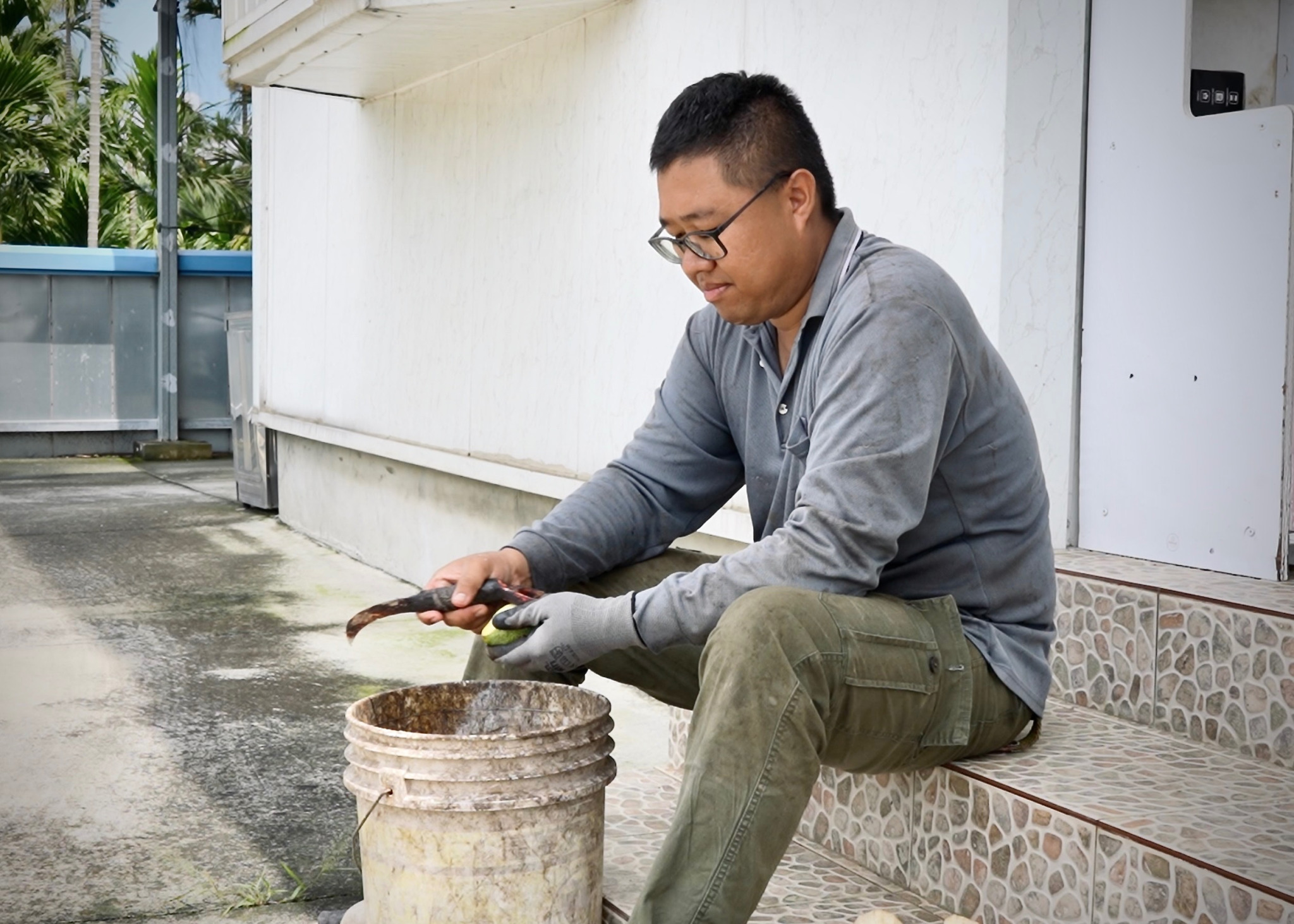 今早,我跟彤瑾騎著摩托車再度來到柏成哥和清健阿伯的愛玉園。由於柏成哥是紀錄片的主角,因此在蹲點的最後階段,我們時常來愛玉園報到。