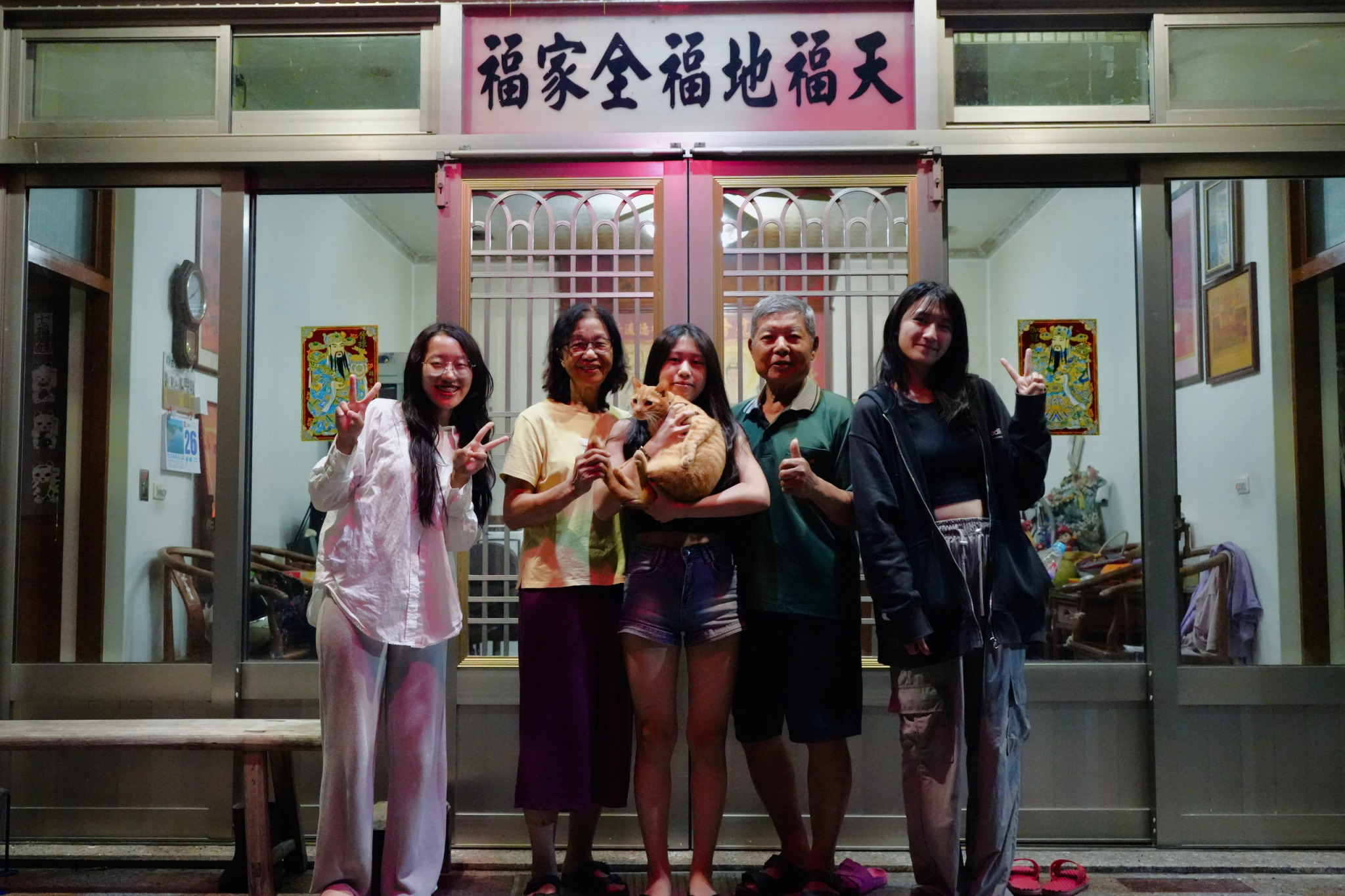 剛回到三合院,余培阿伯、麗錚阿姨也剛好回到家。我們一起坐在三合院的沙發上看著夜景、聊著天,感慨時光的流逝。當彤瑾說:「阿伯、阿姨明天我們就要走了。」麗錚阿姨很不捨地說:「好快喔!我感覺你們才沒來多久。」時間不等人,我們也抓緊最後一個夜晚和阿伯、阿姨聊天。