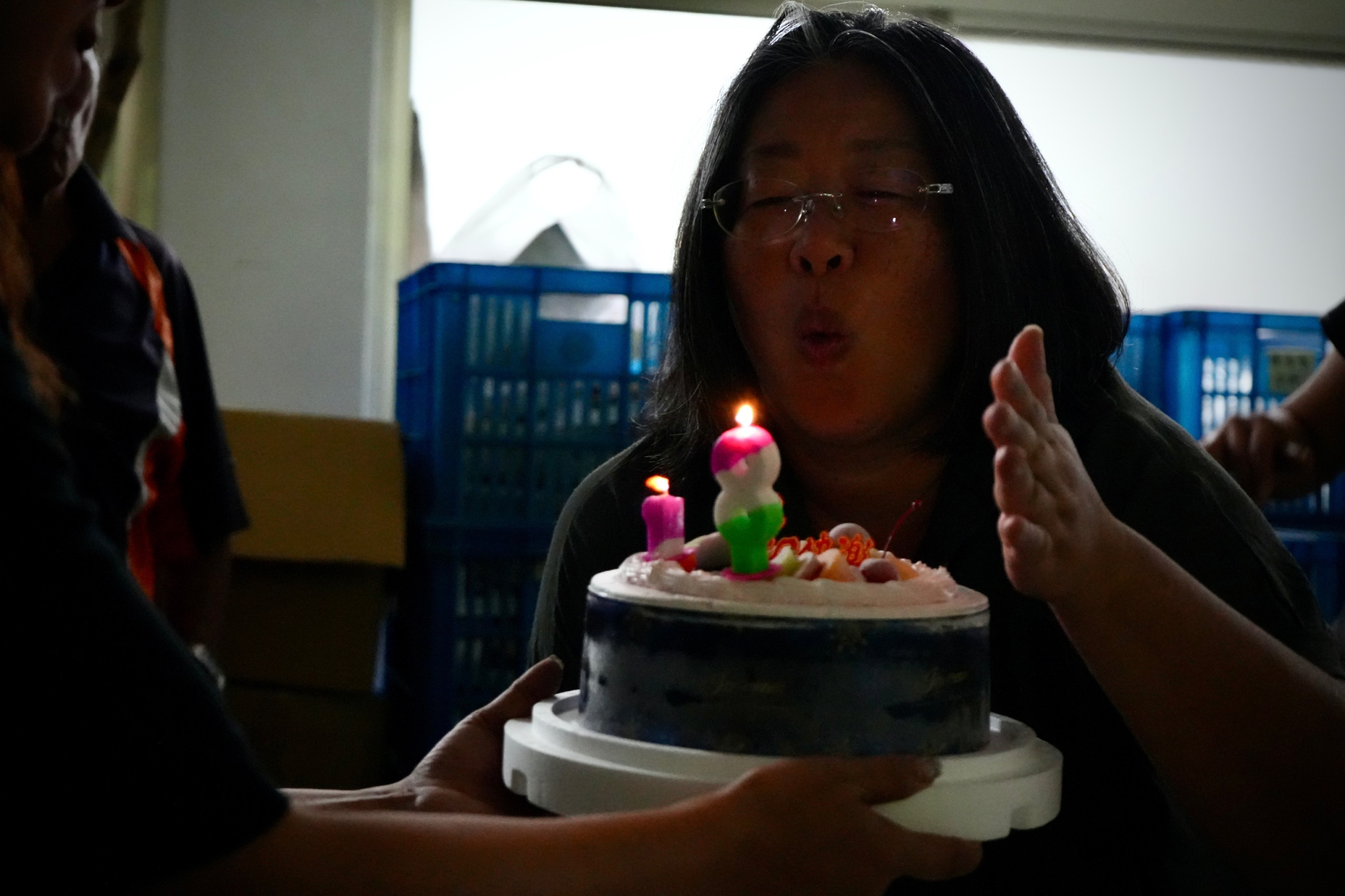 正當我們準備離開時,云繡阿姨突然叫住我們說:「你們等一下再走,今天雅玫姐生日,我們要幫他們慶生。」我們又再度參與雅玫姐的慶生環節,很有口福的吃了兩次好吃的蛋糕。