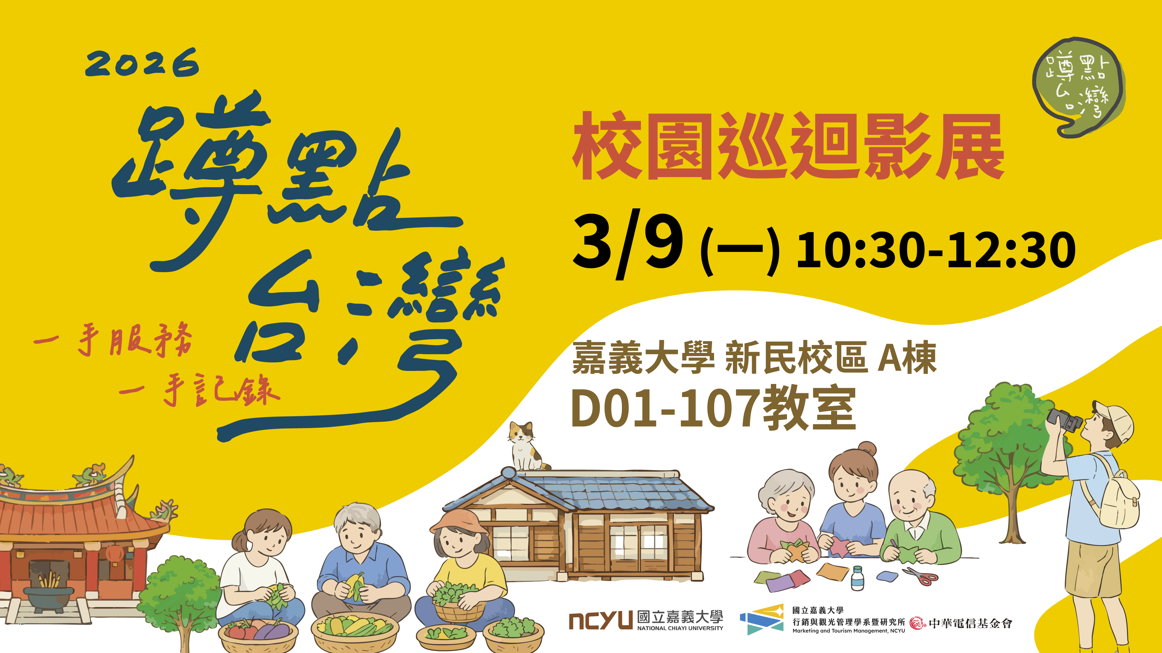 2026 春展 國立嘉義大學 ∣ 場地: 新民校區 A棟 D01-107 教室 影展時間2026/03/09 - 10:30 - 12:30 影展地點新民校區 A棟 D01-107 教室 協辦單位嘉義大學 行銷與觀光管理學系暨研究所 【屏東赤山社區】 獲2025最佳服務獎 【彰化市Formosa玩具基地】