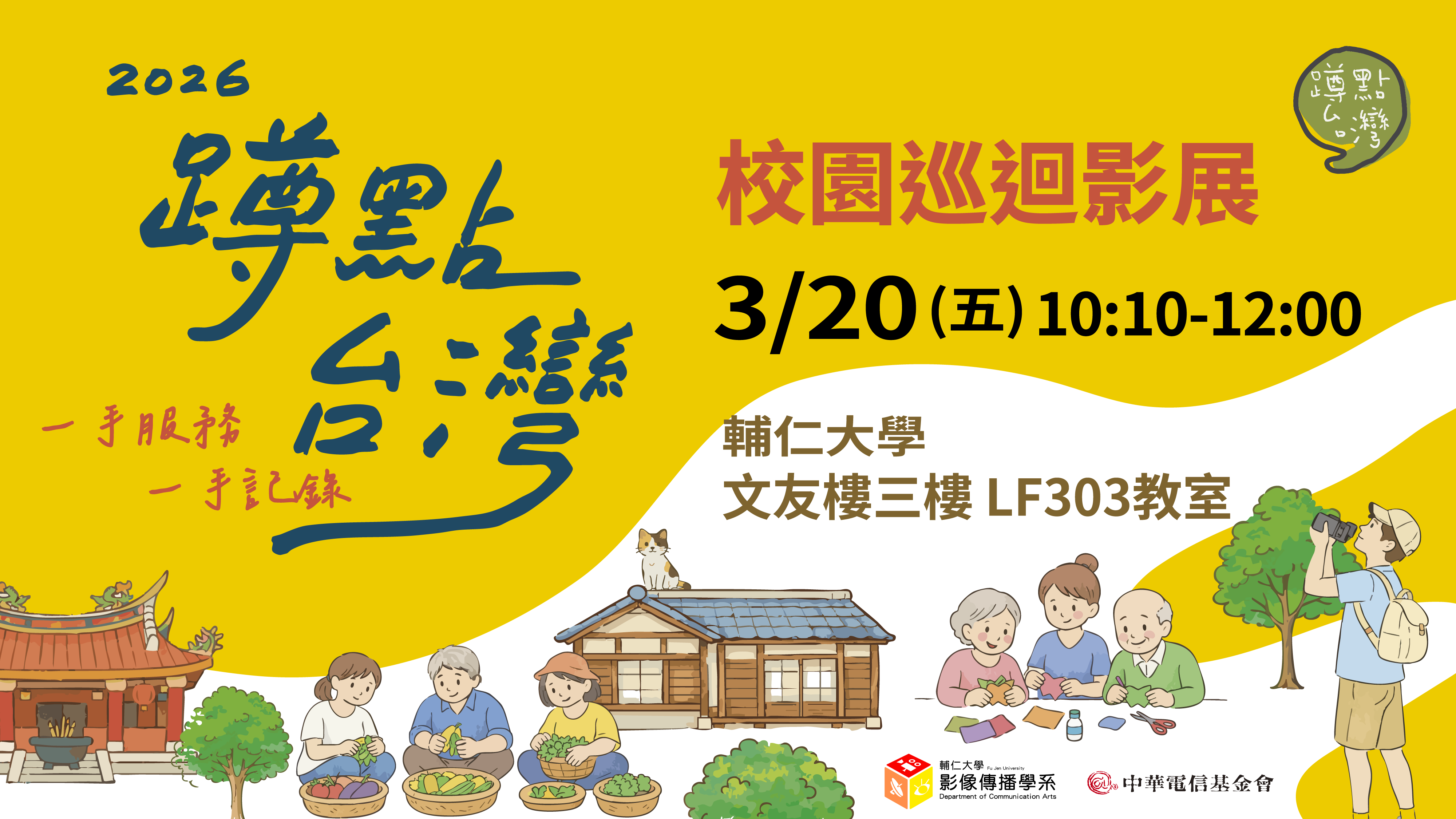 2026 春展 輔仁大學 ∣ 場地: 文友樓三樓 LF303 教室 影展時間2026/03/20 - 10:10 - 12:00 影展地點文友樓三樓 LF303 教室 協辦單位影像傳播學系 【馬祖馬港社區】獲2025網路行銷獎 【雲林華南社區】