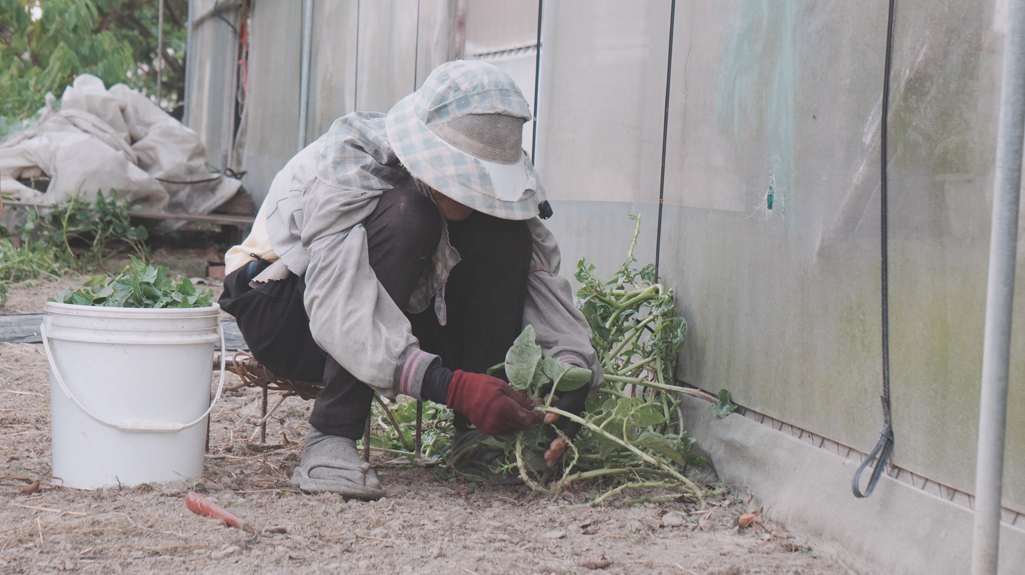 這句話十分簡潔有力,卻又能深深的印入我們的腦海中,她豁達的人生態度,在此刻完全體現出來了。8小時的日曬、45度的溫室、中午吃冷掉的飯菜、搬運沉重的蔬菜......這些旁人眼中的難關,在她眼中都只是再平凡不過的日常。所謂種田的「工作」,對她來說也只是日常生活的一部份而已,她理想的生活就是要每日來到這塊田地做事,這裡就是她生存的意義。