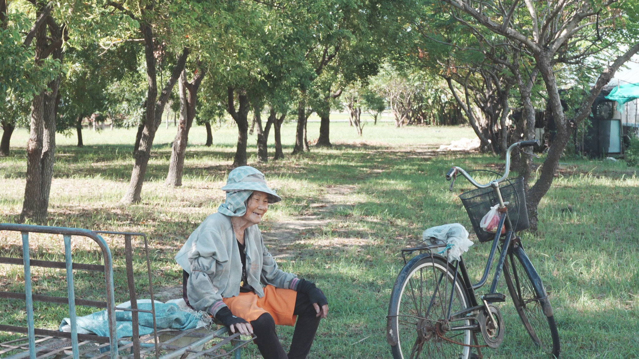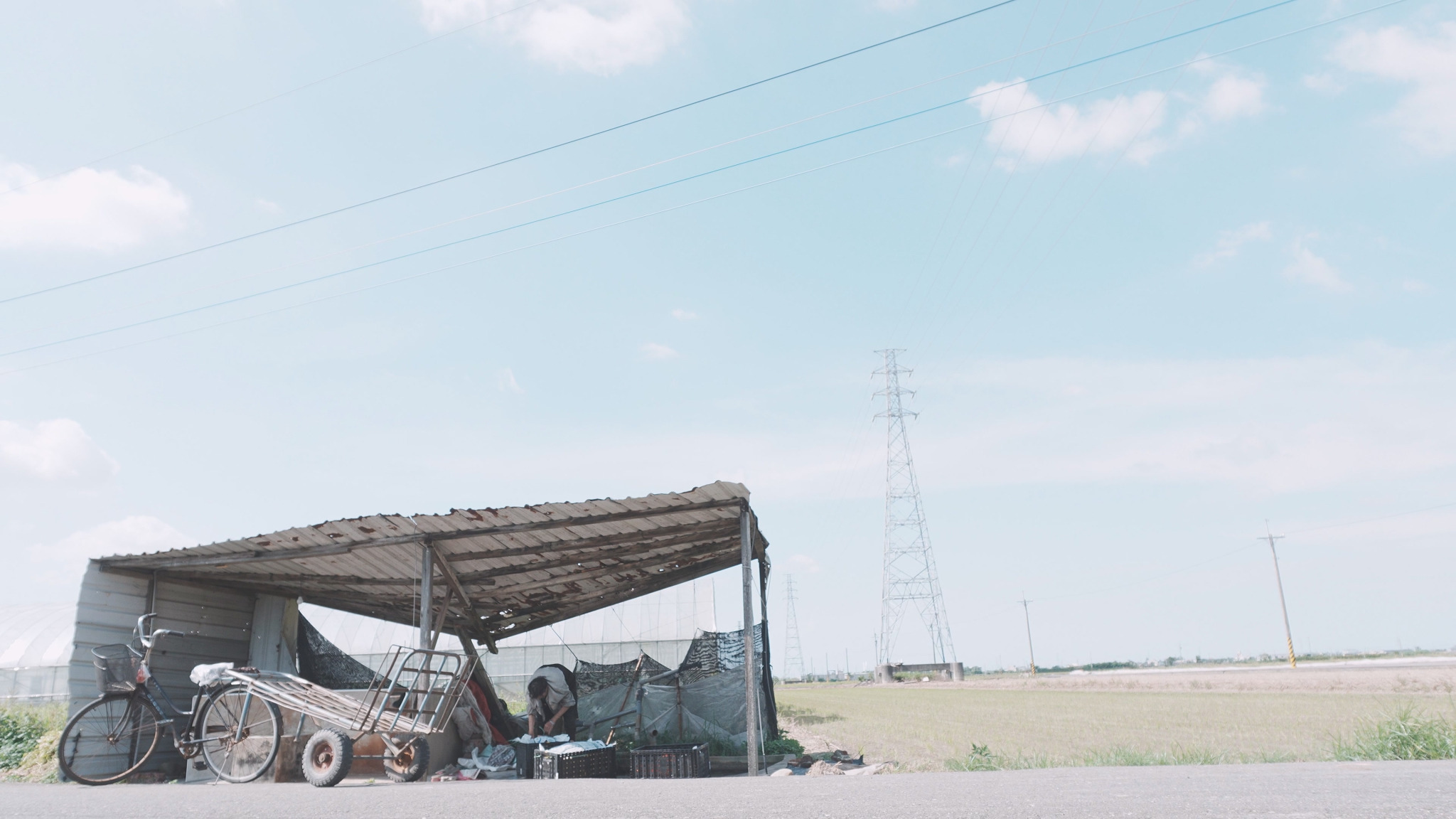 我們和魏阿嬤的初次相遇,是在一個艷陽高照的正午。在如此炎熱的天氣下,路上只有她牽著腳踏車在大太陽下踽踽前行。她朝著路邊的一個棚子走去,正當我們以為她是要在那乘涼稍作休息時,她便開始搬運起了車上的蔬菜開始洗菜的工作。魏阿嬤堅毅的工作精神立馬吸引了我們的好奇心,於是我們便上前去和她聊天。