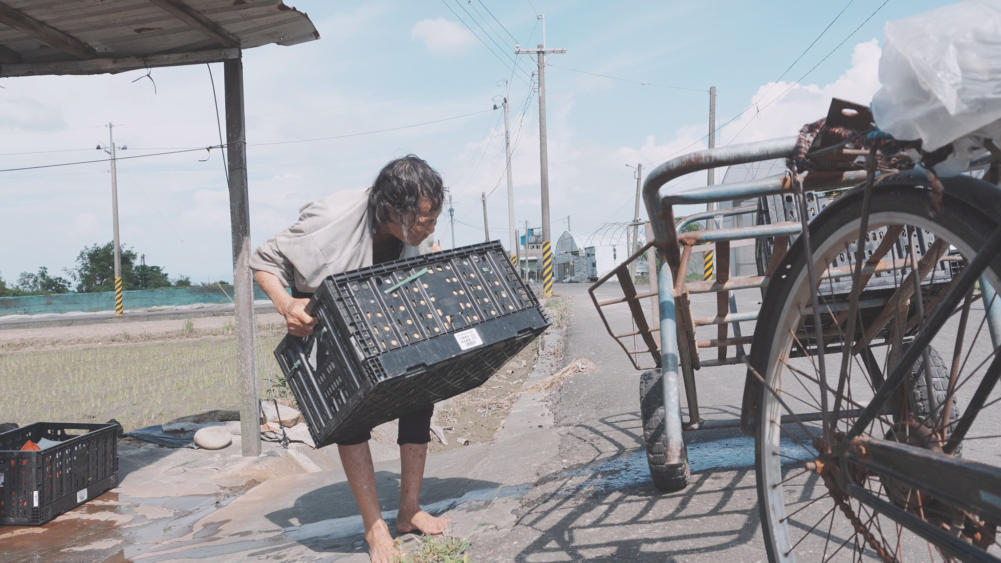 在我們聊天的時候,阿嬤的單車就差點發生意外,因為她在搬運蔬菜的過程中,不慎碰撞到了單車後的貨架,整輛腳踏車和後面的蔬菜差點就因此全數翻覆。阿嬤年邁的身軀早已無法負荷過重的體力活,年輕人要扛起一箱重達15-20公斤的蔬菜已經不是件容易事,更何況是90歲的一位婦人。縱使在工作上有諸多不便,她還是堅持要親自打理這塊田,從這些細節都能看出她刻在骨子裡的農夫精神。