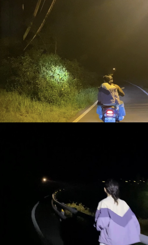 獵人們很快就進入狀況,帶著頭燈,巡視著山林之間的光點。這時,領頭的獵人突然丟下車,坐在後座的我猝不及防,等站穩身體後,領頭獵人在黑夜中早已不見蹤影。半晌,一個身影映入眼簾,看錯了啦走了,他說。