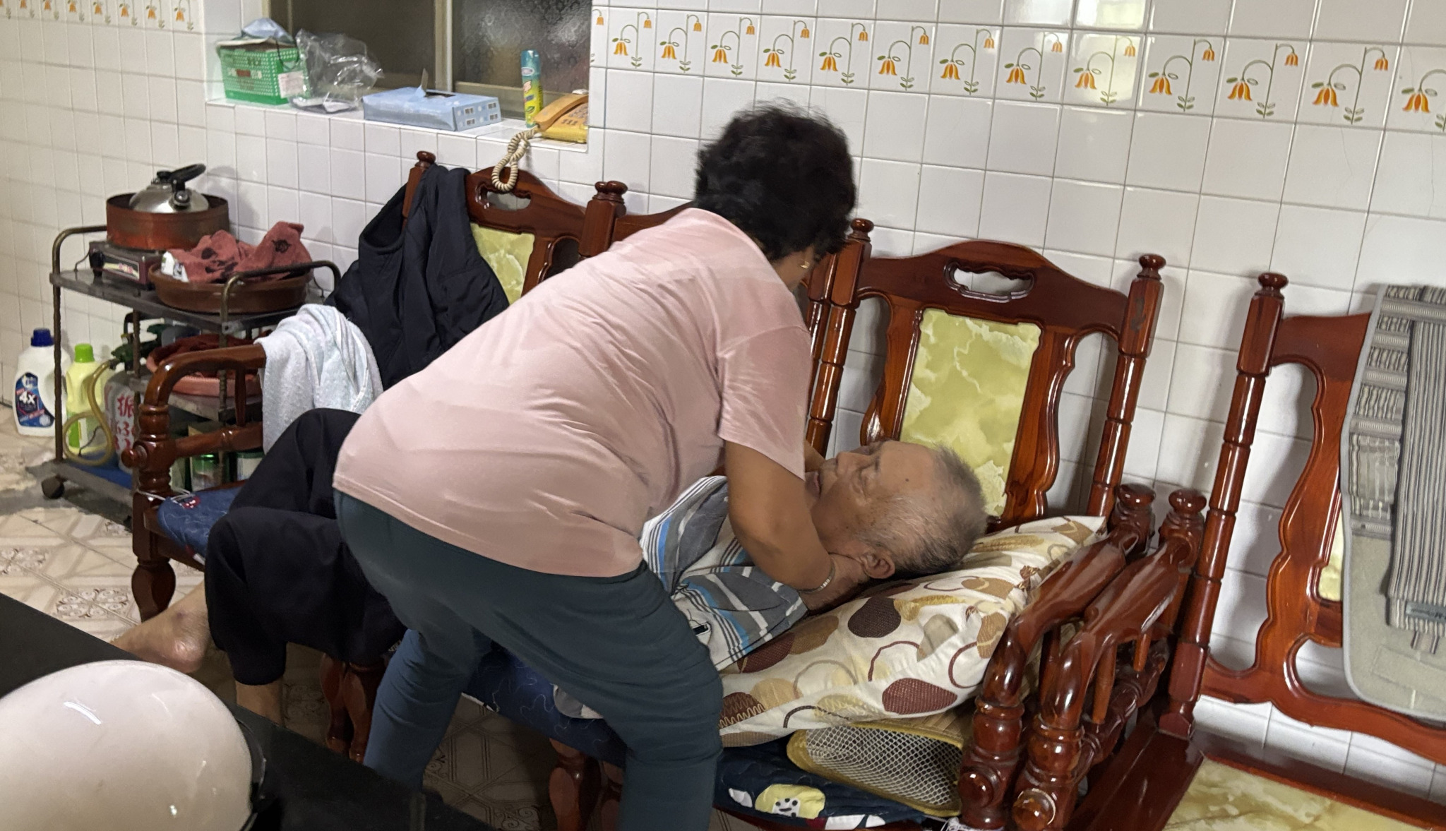 阿嬤提及,在這10年間,每天都需要非常早起床為阿公洗梳、準備餐點,甚至協助他如廁。而且,阿公的體重並不輕,阿嬤說, 有時自己真的沒有足夠的力氣去扶阿公上下床,或者走到客廳。聽到這邊,我們無比心疼阿嬤的付出。