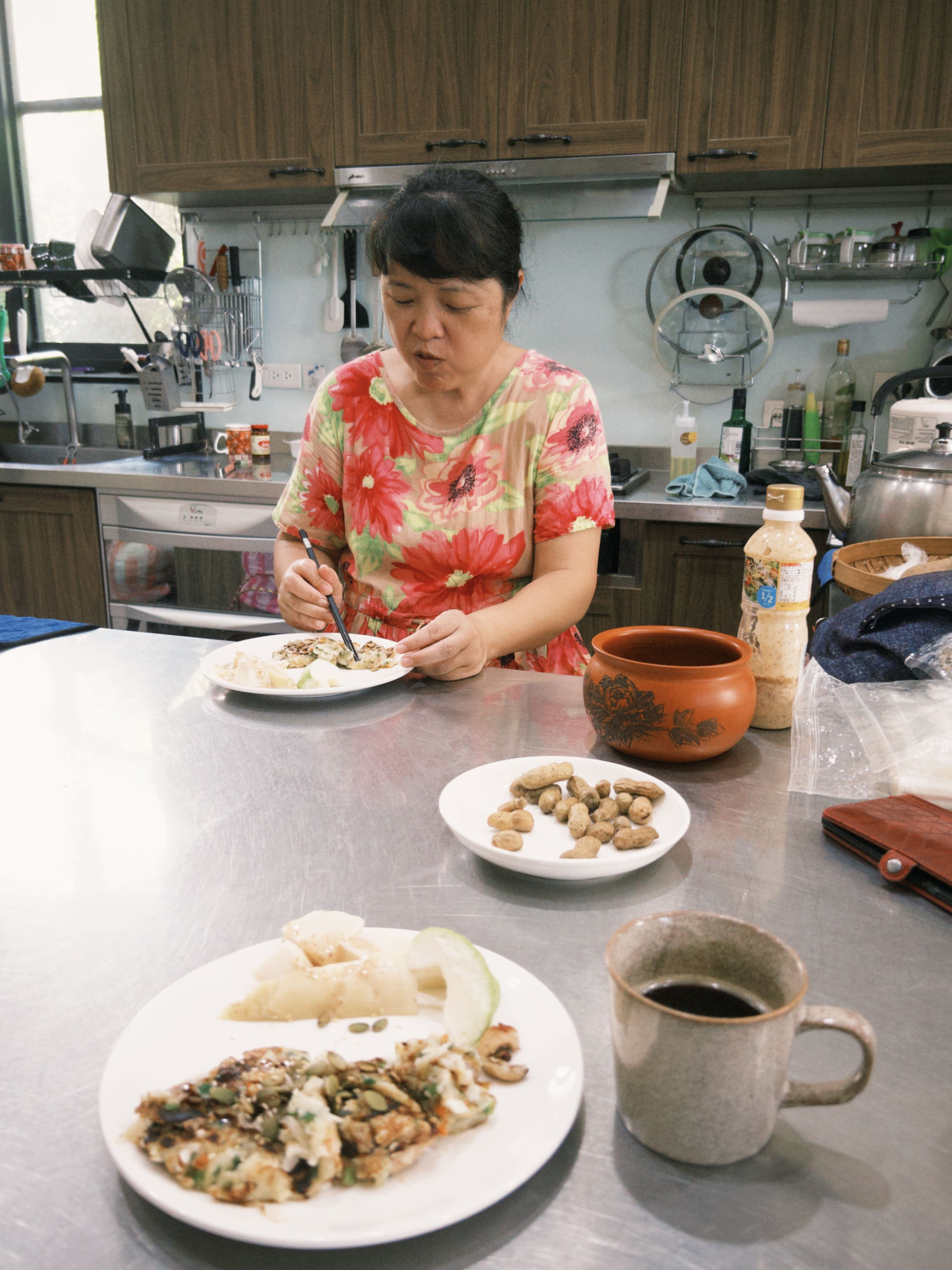 嚴肅的話題告一段落,菊姐跟我們聊起過往的經歷。菊姐雖然現在經營一間體驗農家的民宿,沒有任何宣傳,隨緣的接待來訪的客人及家人、朋友,沒事時就種種菜、準備天然食材的料理,愜意的享受退休生活,但難以想像的是,前面這些描述與菊姐前幾年過的生活截然不同。菊姐中年時期與先生在大陸創業,辛苦幾年後公司穩定,而菊姐也在公司有著舉足輕重的位置,但就在事業持續發展時,她卻發現先生對婚姻不忠而且持續了好幾年,甚至還有了孩子。以為只會出現在八點檔中的情況實實在在地發生在菊姐的身上,我相信任何人在被不管是最親近的伴侶還是一起經歷過創業辛苦的事業夥伴背叛都會崩潰的,何況兩者為同一人。但菊姐沒有因此失去意志,她撐過去並在三天後提出離婚及財產分割,拿回了掌握自己人生的權力,並且回歸重視在自己身上。